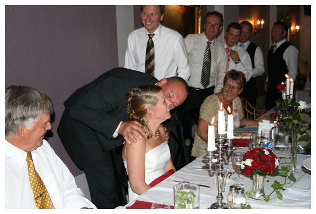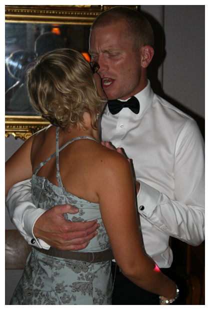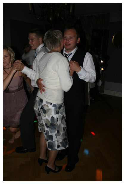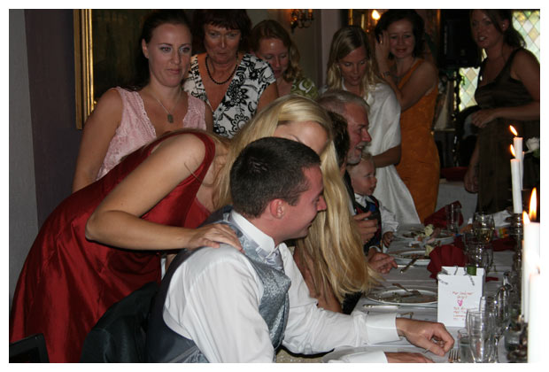 Bruden har lämnat bordet och festens alla damer pussar Pär :-).