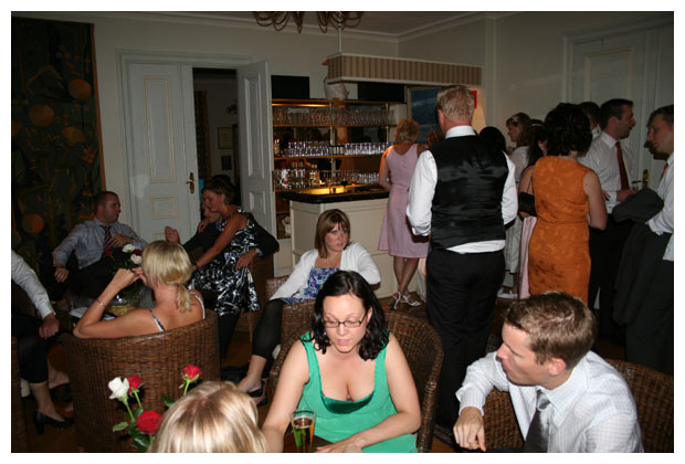 Mingel & bubbel innan middagen Festen inleddes med bubbel och mingel. Medans alla gäster anlände tog vi en paus på vårt närbelägna hotell.