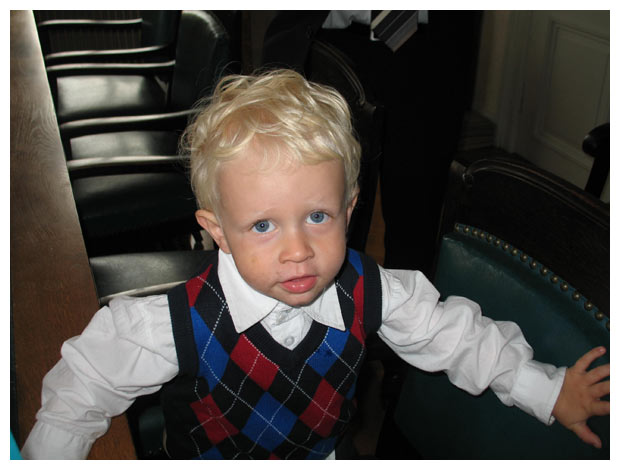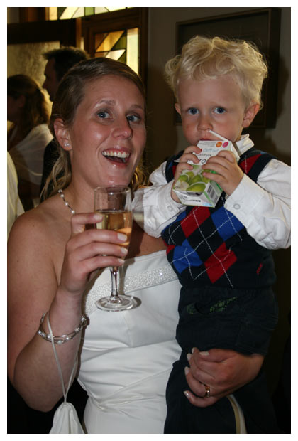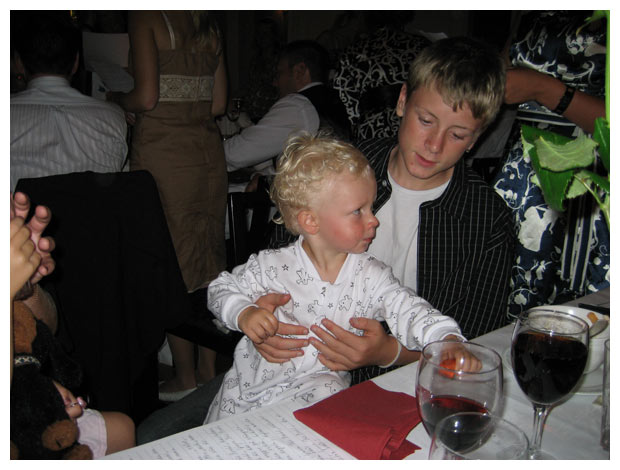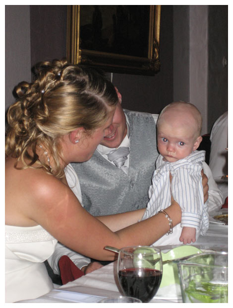 Elliot - festens yngsta deltagare gjorde inte mycket väsen av sig. En kort liten stund var han vaken för att säga hej till brudparet och tanka lite käk hos mamma Hannah.