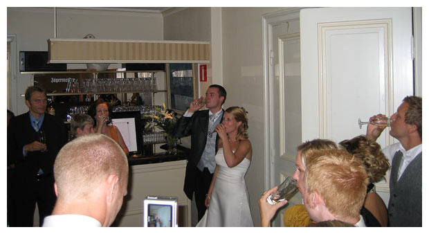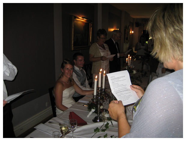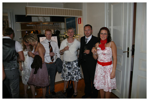 När alla var på plats gick vi bort till vår fest för mingel och den traditionella brudskålen :-).